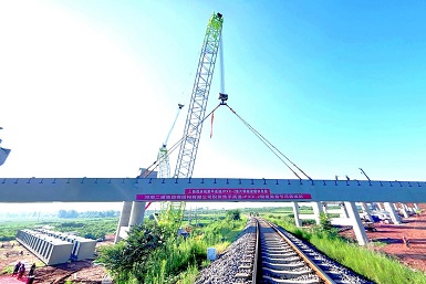 焦平高速新襄段跨禹登鐵路鋼箱梁首節吊裝