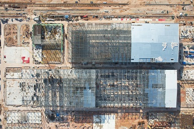 億緯馬來西亞一期項目施工總承包工程化成車間二標段主體鋼結構封頂