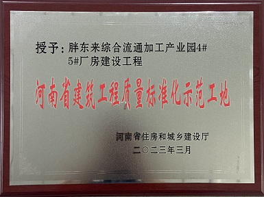許昌胖東來綜合流通加工產業園4#5#廠房建設工程榮獲“河南省建筑工程質量標準化示范工地”