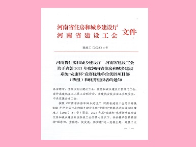 河南二建集團鋼結構有限公司焊工班組榮獲“2021年度河南省住房和城鄉建設系統‘安康杯’競賽優勝班組”稱號