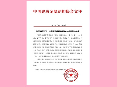 河南二建集團鋼結構有限公司郁紅麗榮獲“2021年度建筑鋼結構行業巾幗模范“榮譽稱號