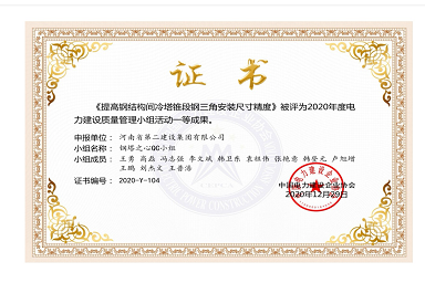 河南二建集團鋼結構有限公司國電雙維電廠新建工程項目部被總包單位評為“2020年度質量管理先進單位”