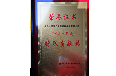 公司被中建八局授予“2020年度特殊貢獻獎”