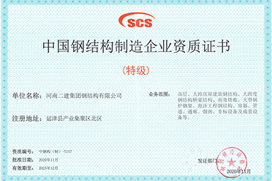 142020.11鋼結(jié)構(gòu)公司成功晉升中國鋼結(jié)構(gòu)制造業(yè)特級(jí)資質(zhì) -