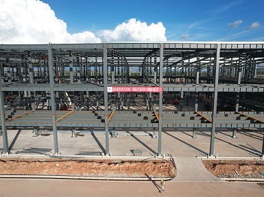 億緯馬來西亞一期項目施工總承包工程化成車間二標段主體鋼結構順利封頂