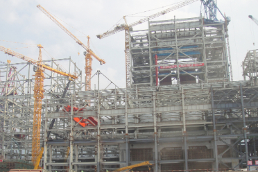 濮陽龍豐“上大壓小”新建項目鋼結構工程主廠房本體為鋼框一排架結構承重體系,鋼結構安裝總量12000噸。 所獲榮譽:中國鋼結構金獎、河南省建筑業新技術應用示范工程、中國建筑工程“魯班獎”。 -